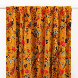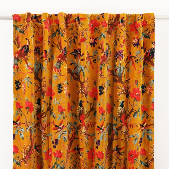 Yellow Bird Printed Velvet Curtains Custom Window Curtain Etsy